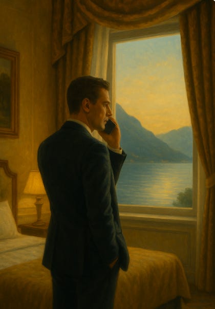 La suite dell’albergo non era solo una stanza, era stata preparata dal suo staff per assecondarne tutte le esigenze: era un rifugio studiato per non lasciare tracce. Dietro l’eleganza dei tendaggi in seta e dei mobili d’epoca, si intuiva una precisione fredda, quasi militare. I tappeti spessi smorzavano i passi, cancellando il suono dei movimenti. Le grandi finestre sul lago, che di giorno offrivano uno spettacolo incantevole, la notte diventavano specchi neri, pronti a riflettere i pensieri di chi vi passasse accanto.
