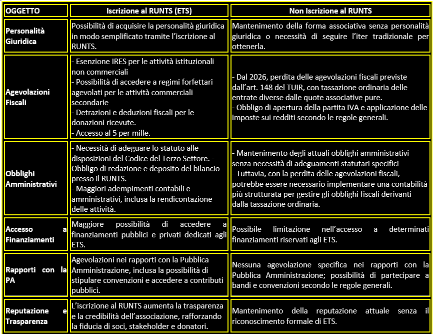 nessun vincolo con RUNTS o con la disciplina ETS;