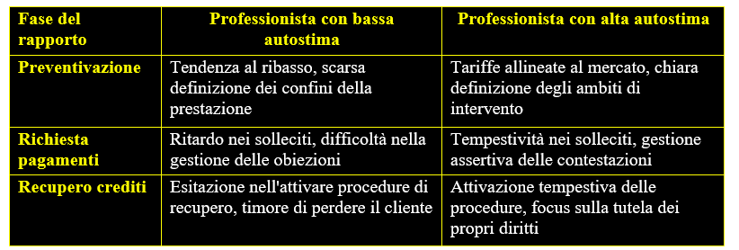 Il ruolo dell'autostima nella gestione dei rapporti economici con i clienti del professionista