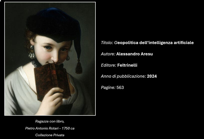 Questa tecnologia, però, non è arrivata dall’oggi al domani. È il frutto di decenni di studi, ricerche, scelte politiche e scientifiche che si sono avvicendate e intrecciate in tutto il globo terracqueo. Per capirla meglio, e non esserne travolti, oggi propongo l’ultima opera di Alessandro Aresu, che racconta il complesso arazzo del mondo racchiuso nelle due semplici parole “Intelligenza Artificiale”. Con uno stile scorrevole e rigoroso, Aresu raccoglie i mille dettagli in cui individuale e collettivo si intrecciano e dove, come nella trama dei migliori film d’azione, storie personali, scelte governative, approcci culturali, ricerca scientifica e sviluppo tecnologico, si incastrano, per provare a comprendere come si è arrivati ai giorni nostri in un percorso in continua e rapidissima evoluzione.